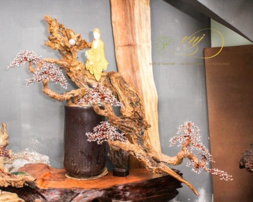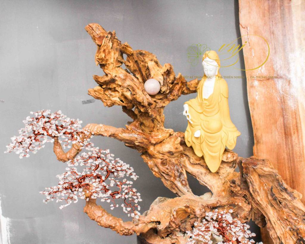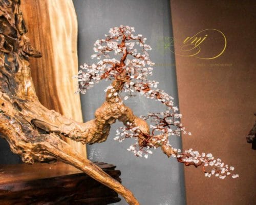 Chất liệu : Lũa gỗ Phặng , Đá Thạch Anh Trắng – Bonsai Dây Đồng, Gốm Tử Sa