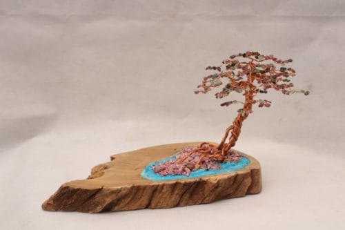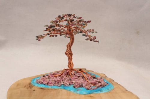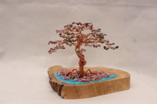 Chất Liệu : Đá Tourmaline Đa Sắc , Gỗ Tự Nhiên, Đá Ruby, Dây Đồng , Bột Đá Quý….
