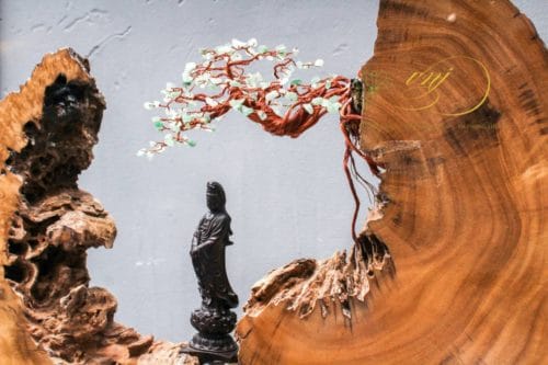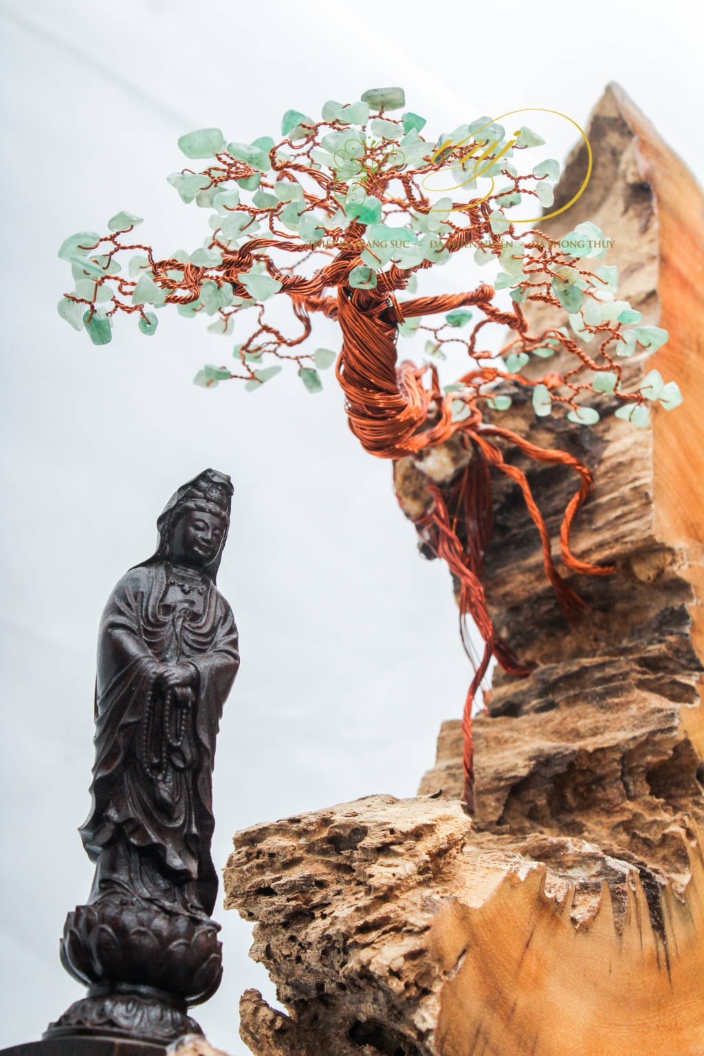 Chất liệu : Lũa gỗ Phặng, Đá Thạch Anh Xanh