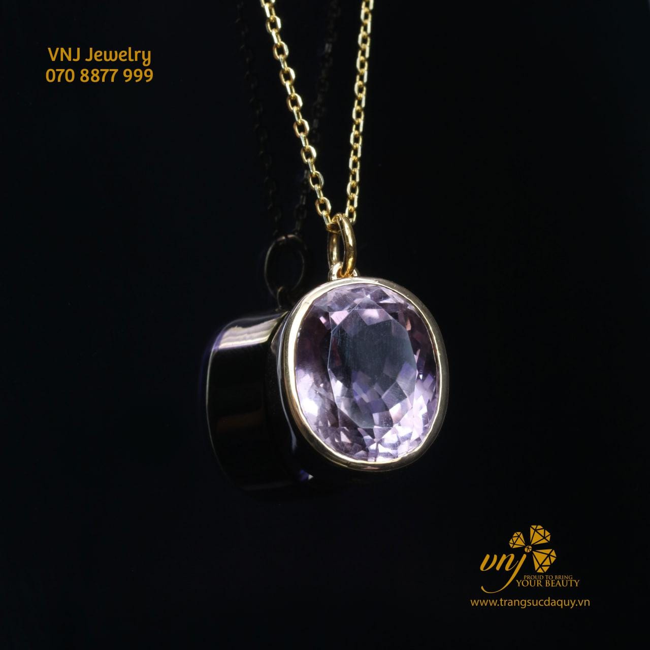 Mặt dây chuyền thạch anh tím từ VNJ là biểu tượng của sự sang trọng và tinh tế. Với thiết kế tối giản nhưng không kém phần quyến rũ, kết hợp giữa chất liệu cao cấp và viên đá thạch anh tím mài giác oval tinh xảo, sản phẩm này sẽ tôn vinh phong cách và cá tính riêng biệt của người đeo.