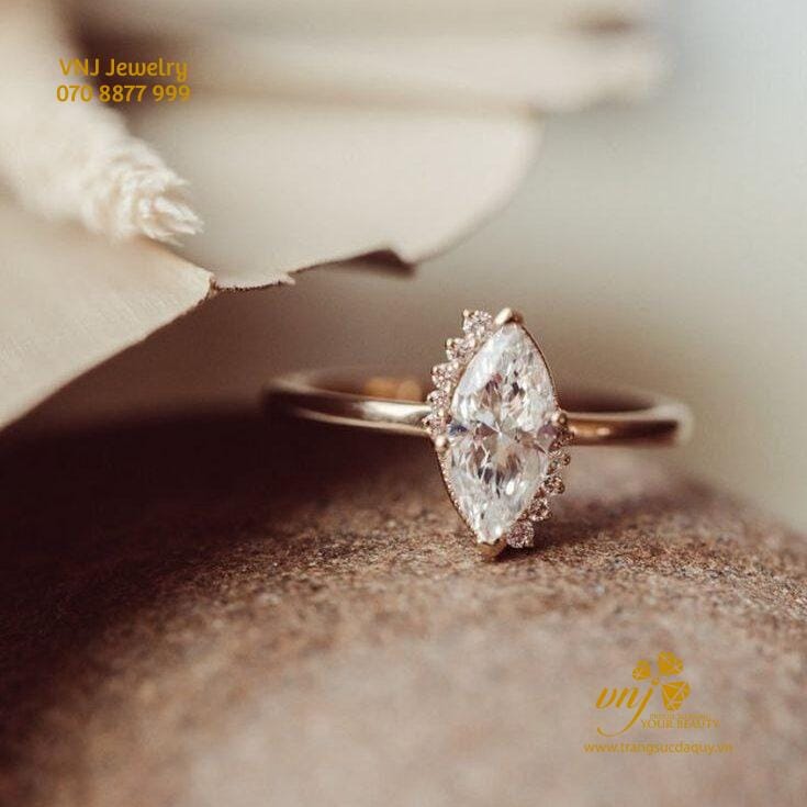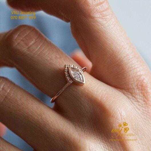 Nhẫn Kim Cương Marquise NWD18 mang đến một thiết kế độc đáo với viên đá chủ marquise, được bảo vệ chắc chắn bằng kiểu chấu bao, tạo cảm giác an toàn và mạnh mẽ cho viên kim cương trung tâm. Phong cách chấu bao không chỉ giúp tôn lên vẻ đẹp của viên đá chủ mà còn tăng cường độ bền cho thiết kế, giúp kim cương ít bị va chạm và trầy xước trong quá trình sử dụng.