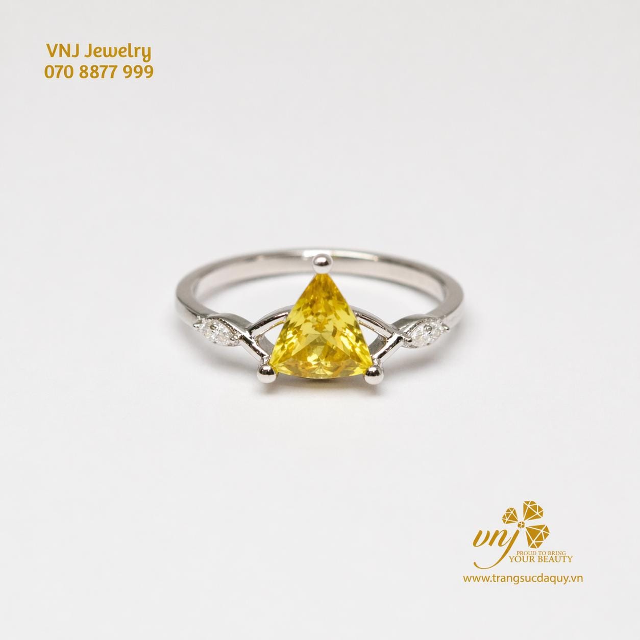Nhẫn Nữ Sapphire Vàng Hoàng Gia NWS67 là thiết kế tinh tế dành cho phái đẹp yêu thích vẻ đẹp thanh lịch và khác biệt. Tâm điểm là viên sapphire vàng kim rực rỡ, được cắt giác tam giác độc đáo, kết hợp cùng chất liệu vàng trắng sáng bóng, tạo nên tổng thể sang trọng nhưng vẫn nhẹ nhàng, nữ tính.