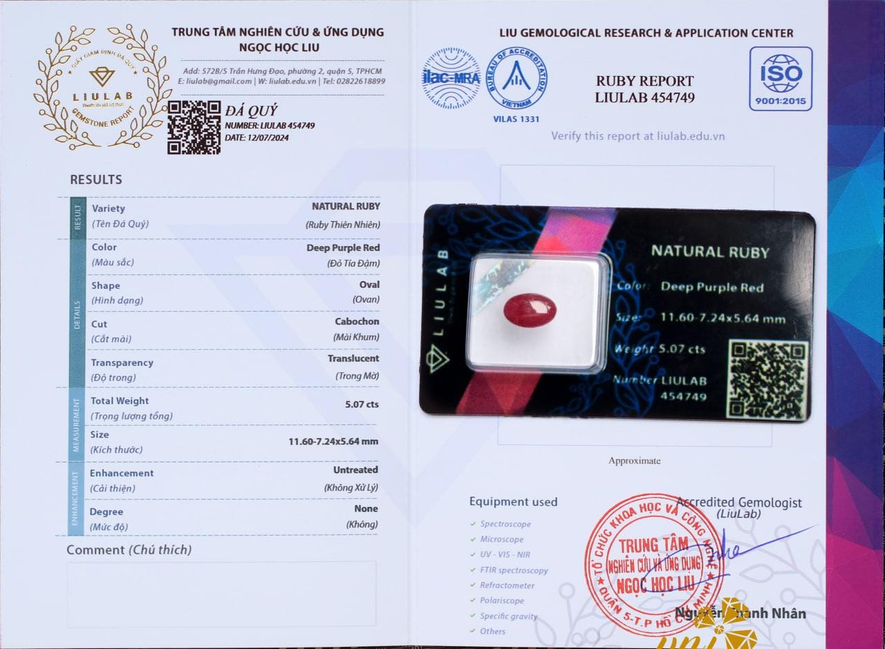 Ruby Thiên Nhiên 100% Không Xử Lý Đã Kiểm Định