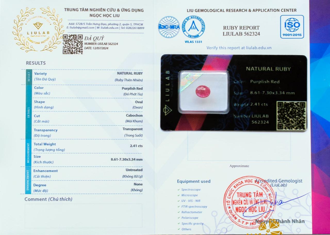 Ruby Thiên Nhiên 100% Không Xử Lý Đã Kiểm Định